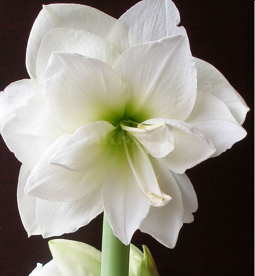 Амариллис махровый вайт пикок - это великолепное растение снежно-белого цвета, которое поражает своей изысканной красотой. Его стебель высотой 20-30 см украшен крупными цветками диаметром 20-22 см, создавая неповторимый вид в любом саду или огороде. Листья амариллиса имеют интересную форму и придают растению особый шарм.