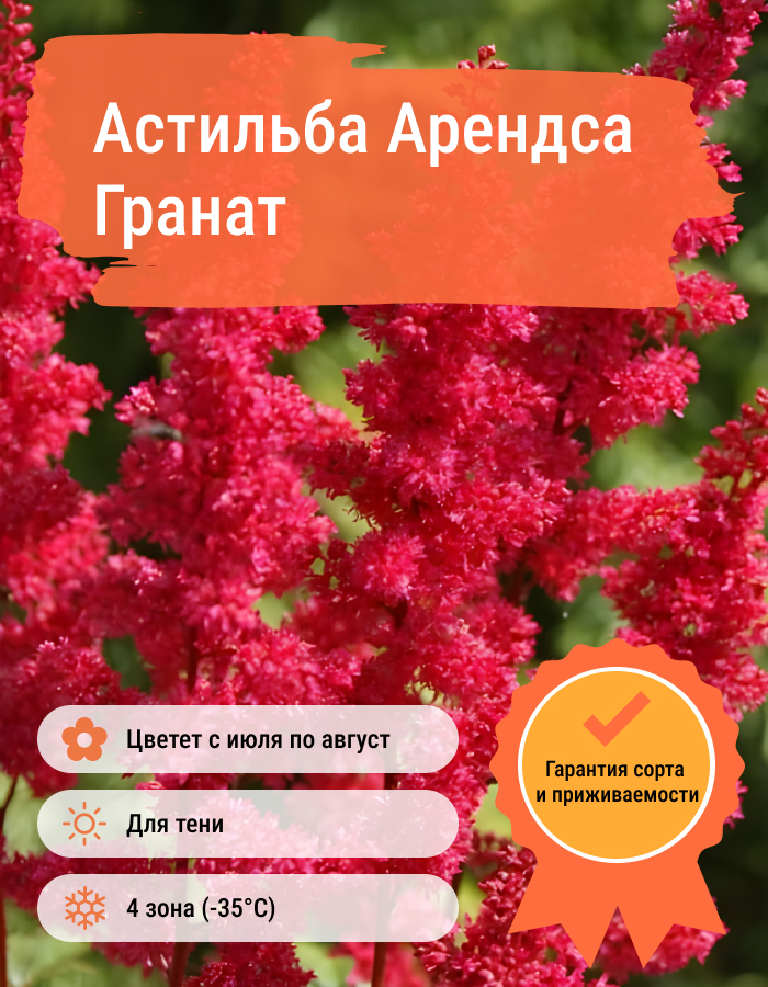 Астильба Арендса Гранат - это великолепное растение, которое поразит вас своей красотой и изяществом. Ее стебли достигают высоты 60-80 см, а красные цветки расцветают в мае-июне, придавая вашему саду неповторимый шарм. Листья астильбы имеют темно-зеленую окраску, сохраняя свою красоту на протяжении всего сезона.