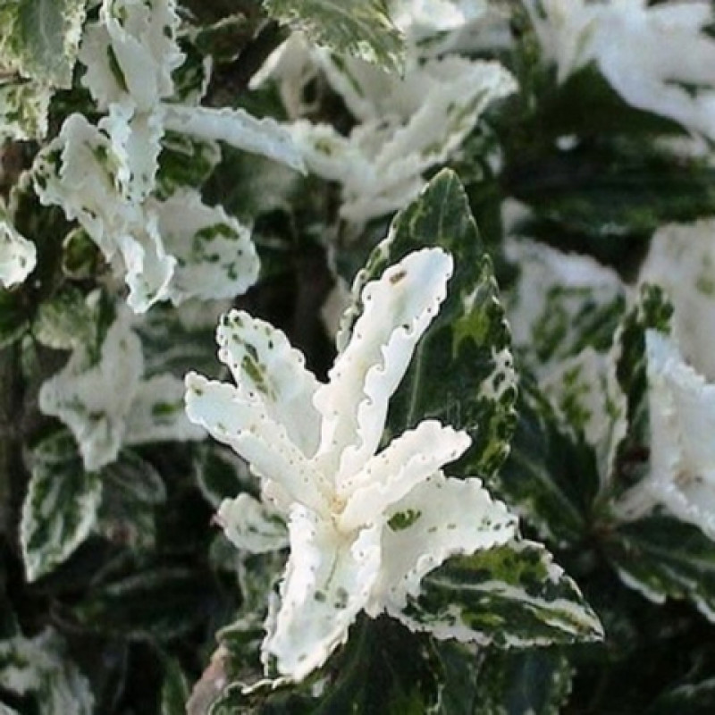 Саженцы Бересклета Форчуна Harlequin (Euonymus fortunei) – китайского вечнозеленый стелящийся кустарник высотой 30 сантиметров. Шириной около 3 метров сорт используется в почвопокровных целях. Растение устойчиво к морозу, непривередливо в уходе и не сбрасывает листву в Осеннего период. Саженцы комфортно чувствуют себя во влажной почве в долине или возле поймы реки. Отличным местом для посадки станет подлесок. В период цветения, который приходится на июнь месяц, Harlequin формирует компактные цветочки зеленовато-белого оттенка и яркие круглые плоды, непригодные в пищу. Декоративный кустарник подойдет для украшения садовых клумб и наполнения миксбордеров.