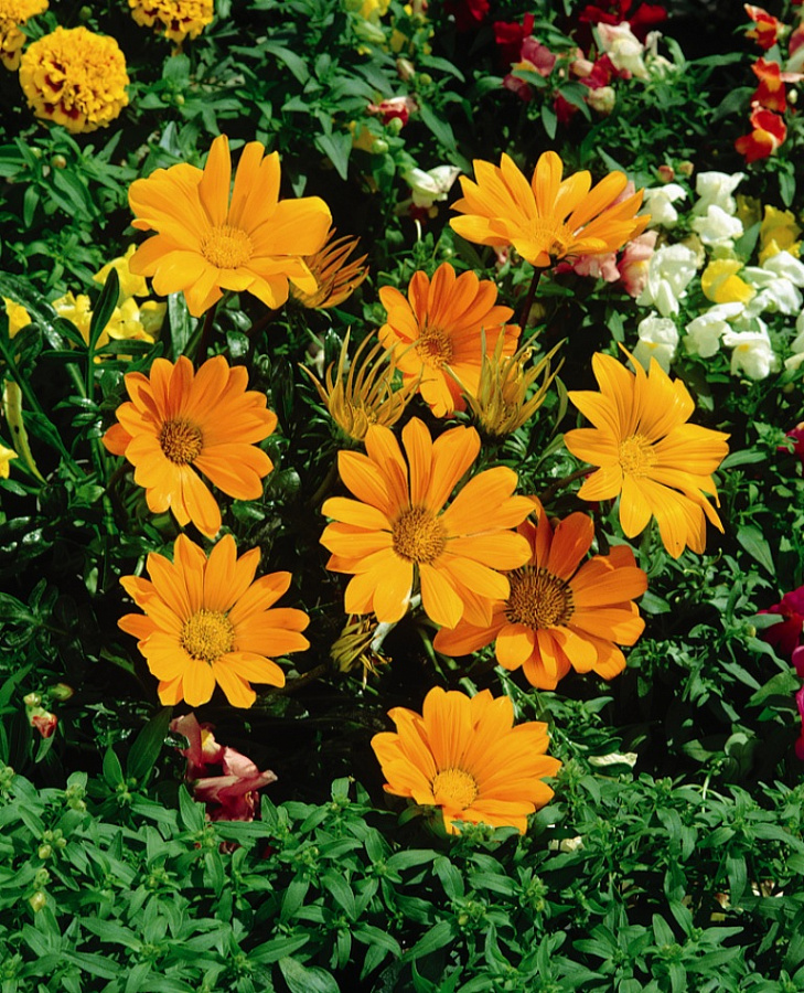 Семена газании Нью Дей F1 Клир Оранж прекрасно подходят для оформления садовых рабаток, создания ярких цветников и наполнения балконных контейнеров. Растение представляет собой миниатюрный куст высотой не более 30 см. На фоне плотной зеленой листвы с серебристым отблеском ярко выделяются оранжевые цветы диаметром около 12 см.