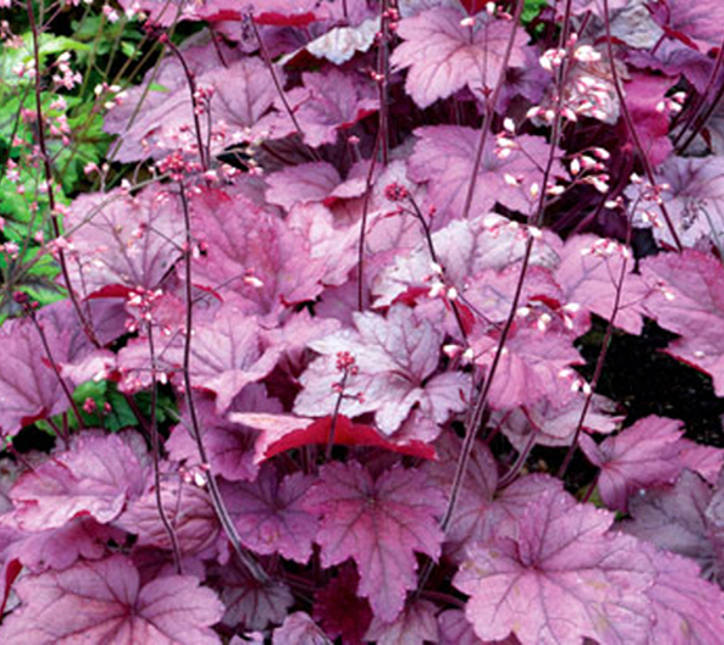 Гейхера гибридная "Джорджия Плам" - это удивительное растение с тонкими стеблями и красивыми розовыми цветками, которые расцветают в июне и июле. Ее листья меняют окраску от розовой до фиолетовой в зависимости от сезона, что создает неповторимый вид в любое время года. Это многолетнее растение достигает высоты до 40 см и идеально подходит для групповых посадок или одиночных композиций.