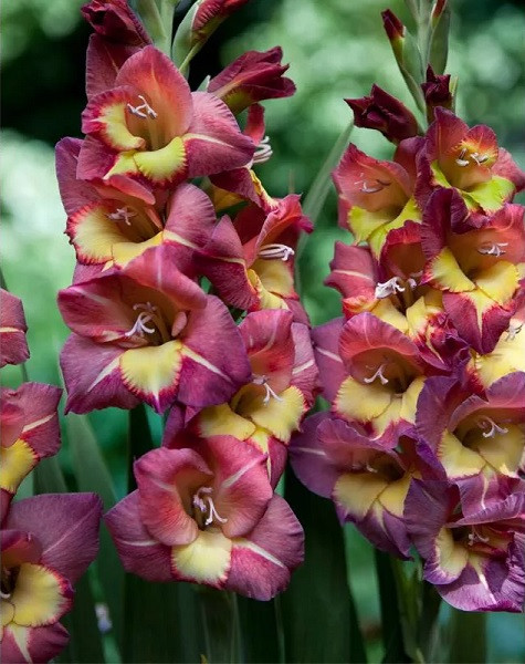 Луковицы гладиолуса гибридного Brescia прекрасно растут практически в любой почве и обходятся без особого ухода. Но для обильного цветения растение все же рекомендуют размещать на хорошо освещенные участки с рыхлым, в меру влажным грунтом. Высота растения варьируется от 90 до 150 см. Цветет гладиолус гибридный Brescia с конца июня до сентября. Цветочки двухцветные: желтые и красно-фиолетовые. Лепестки закругленные, не осыпаются при дожде. Диаметр бутона 14-18 см. На одном цветоносе одновременно распускается до 9 цветочков.