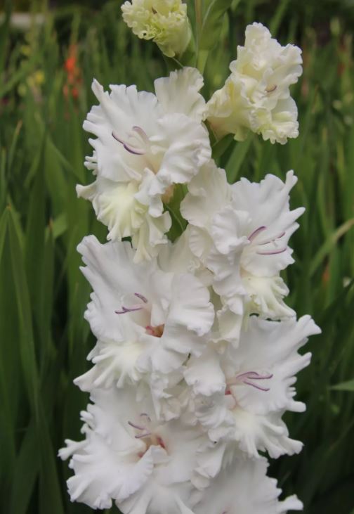 Луковицы Гладиолуса гибридного Сильверстрек (Silverstreak) способны удивить самого искушенного цветовода — посаженные в теплую почву со слабокислой реакцией, они выпускают соцветия высотой до 120 сантиметров. В июле на них распускаются многочисленные простые воронковидные цветки сливочного цвета. Но изюминка цветка — это один или два штриха терракотового или малинового цвета. Мечевидные листья не превышают 80 сантиметров в высоту и подчеркивают изысканность пышных соцветий. Чтобы предотвратить поломку или полегание стеблей, их аккуратно подвязывают к опоре или окучивают на 10 сантиметров.