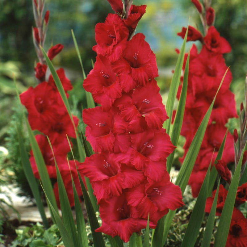 Гладиолус крупноцветковый "Евровижн" - это настоящий художник среди растений вашего сада. Его красные цветы с белым штрихом напоминают огненные фейерверки, взрывающиеся на небе. Стебли этого растения прочные и прямостоячие, достигают внушительной высоты, что делает гладиолус "Евровижн" идеальным для создания живописных цветочных композиций.