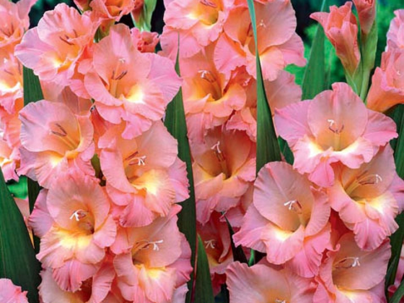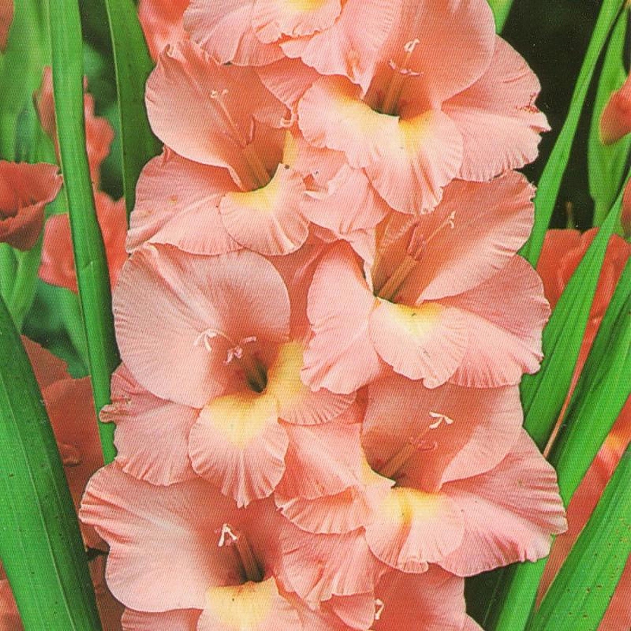 Луковицы гладиолуса крупноцветкового Прага ‒ яркий многолетник для клумб и цветников, а также для среза и составления букетов. Он представлен рослыми кустами, которые достигают до 80‒110 сантиметров в высоту. Гладиолусы предпочитают плодородные, хорошо дренированные почвы и освещенные участки ‒ в таких условиях они вырастают крупными и яркими. На одном цветоносе формируется до 9 бутонов одновременно, за сезон их количество может достигать 25 штук. Они окрашены в нежный лососевый оттенок с плавным переходом к желтому центру. Сорт эффектно выглядит самостоятельно, но также хорошо сочетается с другими цветами.