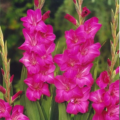 Гладиолус крупноцветковый виолет мун - это воплощение изысканной красоты и неповторимого очарования. Его стебель уверенно поднимается к солнцу, словно стремясь дотянуться до небес, а его крупные цветки пурпурного оттенка с белым штрихом притягивают взгляды как магнит. Листья гладиолуса имеют форму, напоминающую меч, что придает растению особую изящность и грацию.