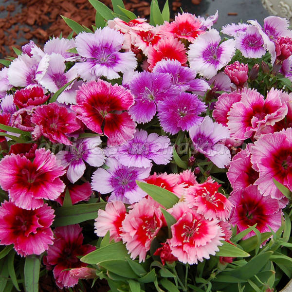 Гвоздика Diana Mix - это удивительное растение, которое поразит вас своим разнообразием цветов и неповторимым шармом. Ее стебель прочный и изящный, достигает высоты 15-20 см, что делает эту гвоздику идеальным выбором для групповых посадок. Цветки миксовые, размером до 5 см, расцветают в течение нескольких месяцев в году, придавая вашему саду яркие краски и неповторимый колорит.