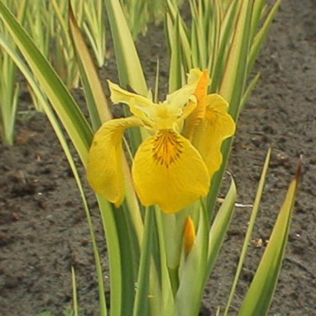 Ирис болотный вариегата - это удивительное растение с яркими желтыми цветками, которые привлекают внимание своей красотой. Его стебель достигает высоты до 90 см, что делает его заметным элементом в саду или огороде. Листья ириса имеют необычную форму, что добавляет изюминку в ландшафтный дизайн.
