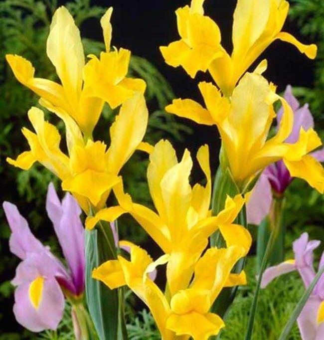 Луковицы голландского ириса Golden Beauty (Iris sibirica) предпочитает расти на одном месте с хорошо удобренным грунтом. Лучшее время посадки – осень. Цветет растение в апреле – мае. Стебель крепкий, достигает 45-60 см в высоту. Образует обычно 1-2 цветка с довольно широкими лепестками. Соцветия диаметром 4-5 см, лимонно-желтого окраса с небольшим оранжевым отливом. Такой цветок отлично смотрится на фоне насыщенно-зеленой листвы. Golden Beauty подходит для выращивания в саду, уличных контейнерах и на срез.