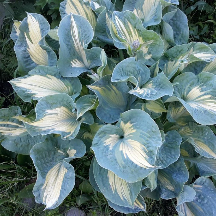 Хоста сорта Golden Meadows (Голден Меадоус) является красивым медленнорастущим кустарником. Листва на нем плотная сизо-зеленого оттенка с оригинальным голубым окаймлением. Необычно смотрится и то, что листья гофрированные.