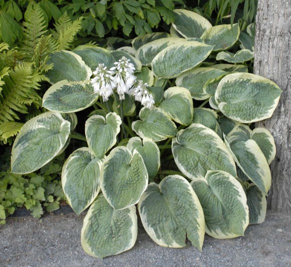 Рассада хосты Носерн Экспоуже порадует любого цветовода, который найдет у себя место для высадки этого достаточно крупного растения. Благодаря большим размерам и пестрой окраске листьев эта хоста привлекает к себе внимание даже несмотря на расположение в притененной части сада. Листья крупные, сердцевидно-овальной формы, с хорошо различимыми жилками, несколько морщинистые. Листовая пластина у хосты Northern Exposure имеет зеленовато голубой цвет в центре и желто-зеленую кайму по краям, которая к концу лета обычно меняет цвет на белый или кремовый.