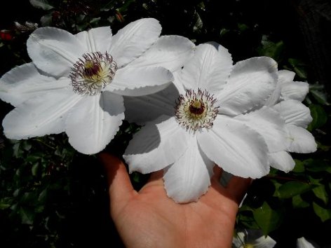 Саженцы клематиса гибридного Королева Ядвига (Krolowa Jadwiga) рекомендуется выращивать на хорошо освещенных и защищенных от ветра местах, с хорошо дренированной и плодородной почвой. Цветет в течение лета с мая по сентябрь. Цветки шелковистые, белые диметром 15-16 см. Клематис гибридный Королева Ядвига (Krolowa Jadwiga) цепляется за опоры листовыми черешками и способен лазать на высоту 200-250 см. Выращивают у беседок, арок, ограждений и других садовых опор. Подходит для выращивания в контейнере.