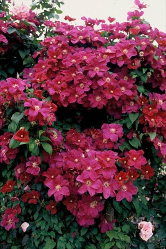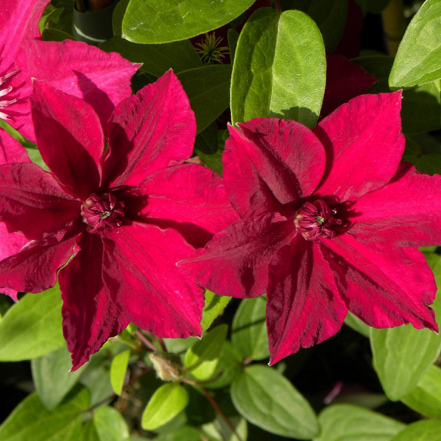 Саженцы клематиса гибридного Перида (Perida) отличаются морозостойкостью, неприхотливостью в уходе, обильным цветением. Предпочитают светлые места с рыхлой и плодородной почвой. Цветение продолжительное, длится с мая по август. Цветки красно-пурпурного цвета, в диаметре достигают 8-12 см. Клематис гибридный Перида (Perida) вырастает до 150-200 см, используется для вертикального озеленения, выращивания в контейнере или как почвопокровное растение. Применяют при благоустройстве лоджий, балконов, террас, места для отдыха.