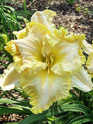 Окраска цветка : Кремовая с жёлтой каймой и зелёным горлом