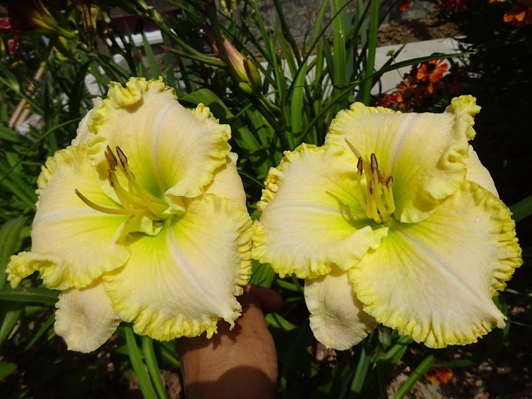 Рассада лилейника Фест Найт (First Knight) придется по душе тем цветоводам, которые ценят простоту и элегантность. Растение цветет крупными бутонами по несколько штук на одном стебле, создавая своеобразный букет. Цвет лепестков имеет нежно-желтый оттенок, а по краю идет обрамление гофрированной золотистой каймой.