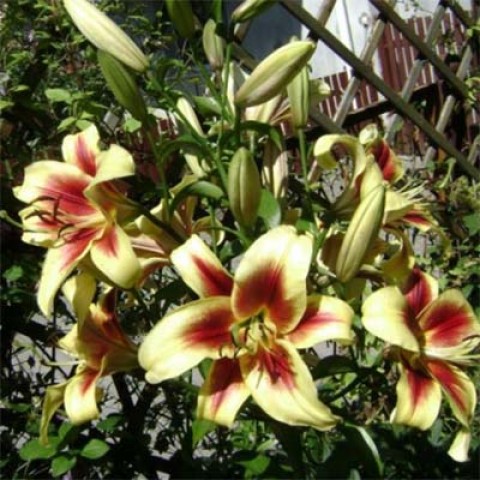 Лилия от-гибрид Флавия - это великолепное растение с яркими желтыми цветками, украшенными насыщенно-винным пятном. Ее высота может достигать до 120 см, а размер цветка поражает своей красотой - до 25 см в диаметре. Листья лилии имеют зеленую окраску и интересную форму, что делает растение еще более привлекательным.