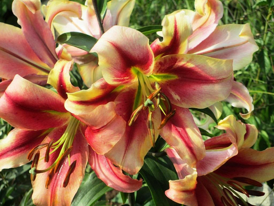 Саженцы и рассада необыкновенной Лилии от-гибрид Олимпик Флейм (Lilium OT-Hybrid Olympic Flame) способны расти без пересадок до 5 лет. Высота стебля достигает 150 см, зелень темная с множеством листьев, цветки крупные, диаметром до 25 см, яркие трехцветные, с сильным ароматом. Лепестки у основания зеленовато-желтые, к середине цвет переходит в яркий красно-розовый, от середины по краям бледно-розовые с коралловым отливом. Распускаются вверх и в стороны, начинает цвести в середине июля, морозостойкие, не требуют укрытия, но почву на зиму нужно мульчировать сухими листьями или торфом.