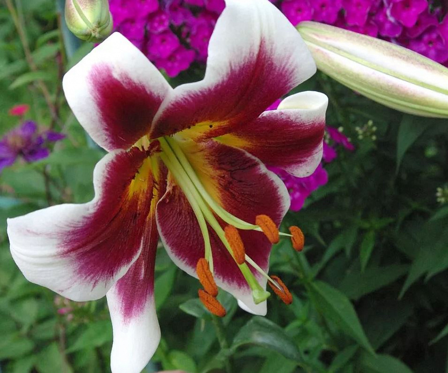 Лилия от-гибрид Роберт Грисбах - это великолепное растение с белыми цветками, украшенными бордовым центром и зеленцой у основания. Ее высота может достигать от 100 до 145 см, а размер цветка равен 20 см. Лилия отличается красивой формой листьев и яркой летней окраской. Это растение предпочитает солнечные и полутенистые места для посадки, а также дренированные богатые почвы.