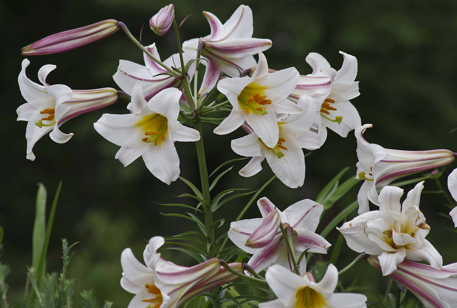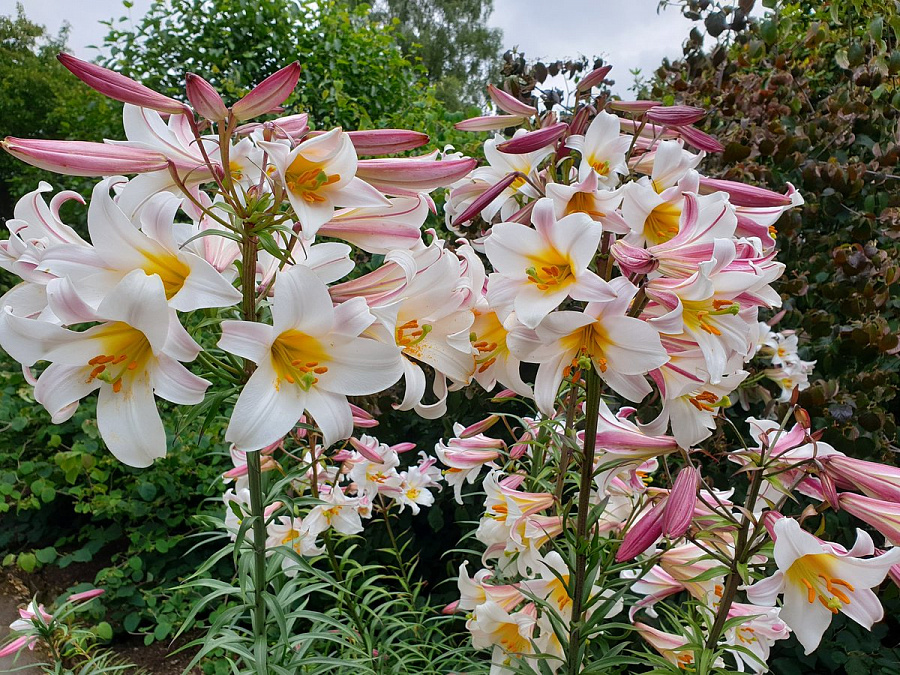 Луковицы лилии Regale растут на увлажненной, богатой органикой, хорошо дренированной почве. Культура светолюбивая, для обильного цветения нуждается в солнечных лучах. В тени растет плохо. Цветки большие, до 20-25 см в диаметре, направлены в стороны и окрашены в розово-желтый цвет, серединка желтая. Такие бутоны эффектно выделяются на фоне ярко-зеленой листвы. Во время цветения от лилии Regale исходит приятный, характерный аромат, в котором улавливаются ноты жасмина. Высота обычно варьируется от 90 до 120-130 см.