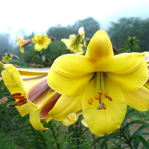 Саженцы и рассада лилии трубчатой Йеллоу Планет (Lilium trumpet Yellow Planet) – очень высокий гибрид, покрывающийся крупными бутонами, которые более привлекательны, чем распустившиеся цветы. Бутон ядовито-желтого цвета, под своей тяжестью наклоняется вниз. Особенно хорошо в полураспустившемся виде. Созревший цветок удивит своей простотой желтого цвета, который бледнеет под воздействием солнечного света.
