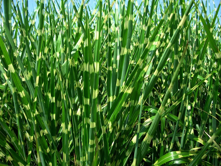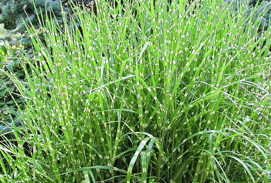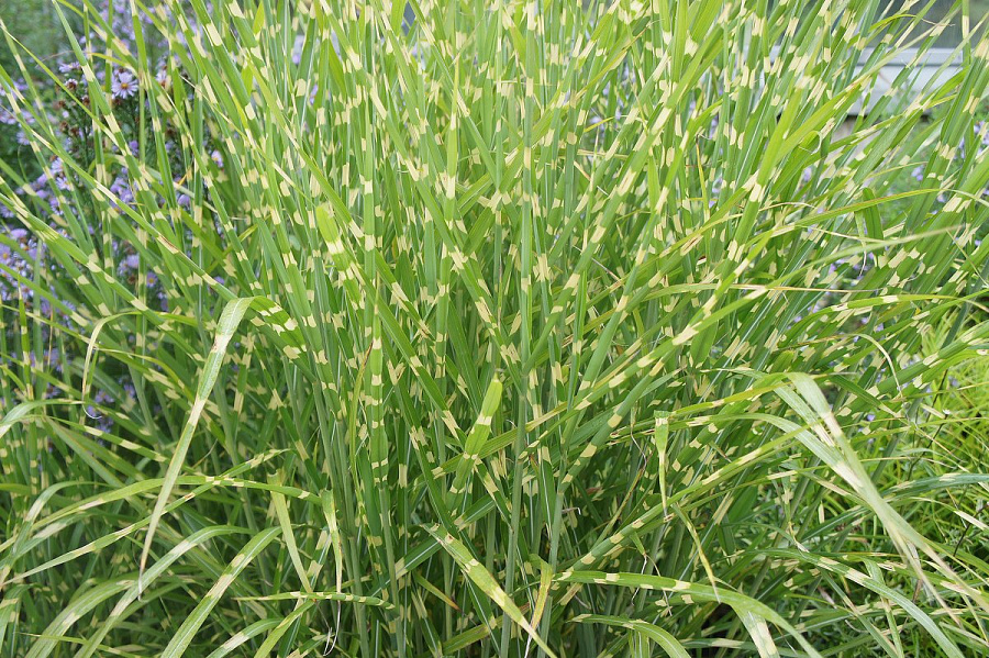 Рассада злака Зебринус (Zebrinus) эффектный кустистый рослый ( до двух метров) мискантус с крепкими стеблями, направленными вертикально. Листья у растения ярко зеленые с поперечными белыми полосами, длинные. Корневая система мощная, разветвленная, отлично удерживает злак прямостоячим. Мисканутсу Зебринус нужно много солнца для хорошего роста и развития. Цветение в виде метелок. Дает семена. Размножить можно делением куста весной, но в розетке должно быть более 5 побегов. Устойчивость к холодам у злака средняя, его нужно укрывать. Лучше всего смотрится мисканутс с растениями ниже себя ростом.
