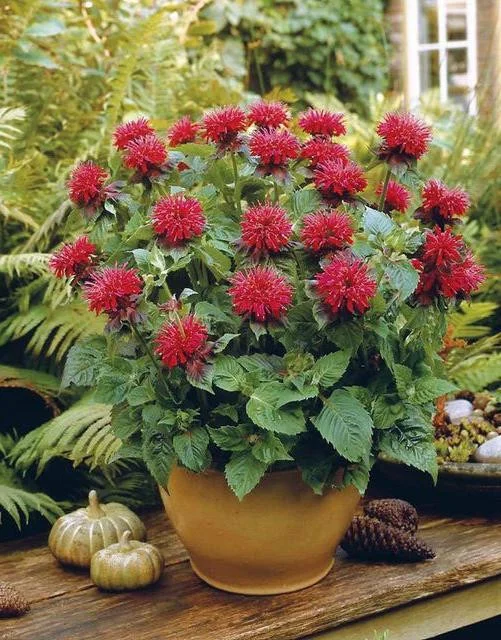 Рассада монарды (дикого бергамота) гибридной Fireball относится к одним из неприхотливых растений, которые подходят для выращивания в смешанных цветниках. Многолетник хорошо переносит любые почвы и разные уровни освещенности. В уходе сорт не требователен. Высота монарды гибридной Fireball около 70-80 сантиметров. Плотные шарообразные цветки имеют винно-красный цвет и украшают куст с июня по август. Они источают приятный цветочный аромат и привлекают на участок пчел.
