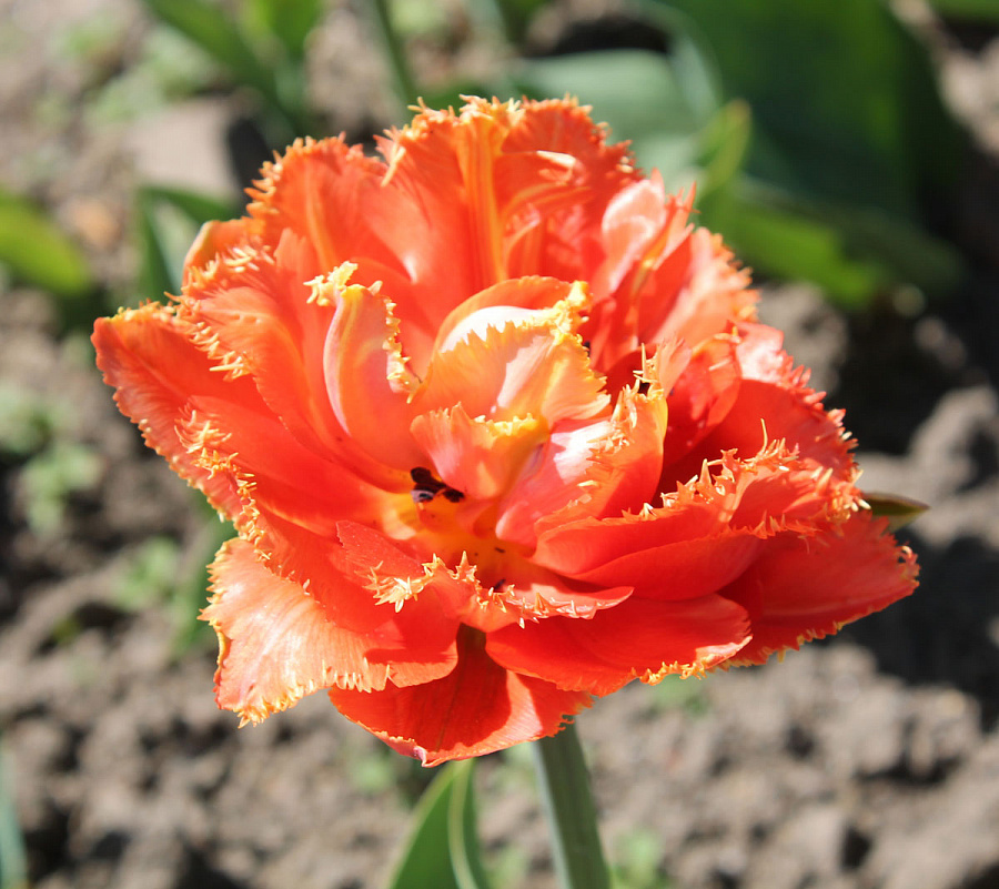 • Окраска цветка : оранжево-розовый с кремовой бахромой, махровый