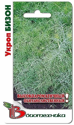 Семена укропа "Бизон" (Bizon) сразу высевают на постоянное место. Для получения богатого урожая ароматной зелени рекомендуется придерживаться расстояния между растениями 8-10 см и регулярно их поливать. Культура достаточно высокая, в фазе цветения может достигать высоту 120-140 см. Лист крупный, зеленый, сильнорассеченный, с восковым налетом. Зонтик большой. Масса одного растения составляет 30-35 грамм. Главное достоинство сорта – после срезки растение очень быстро вторично отрастает. Укроп подходит для потребления в свежем виде, сушки и заморозки.