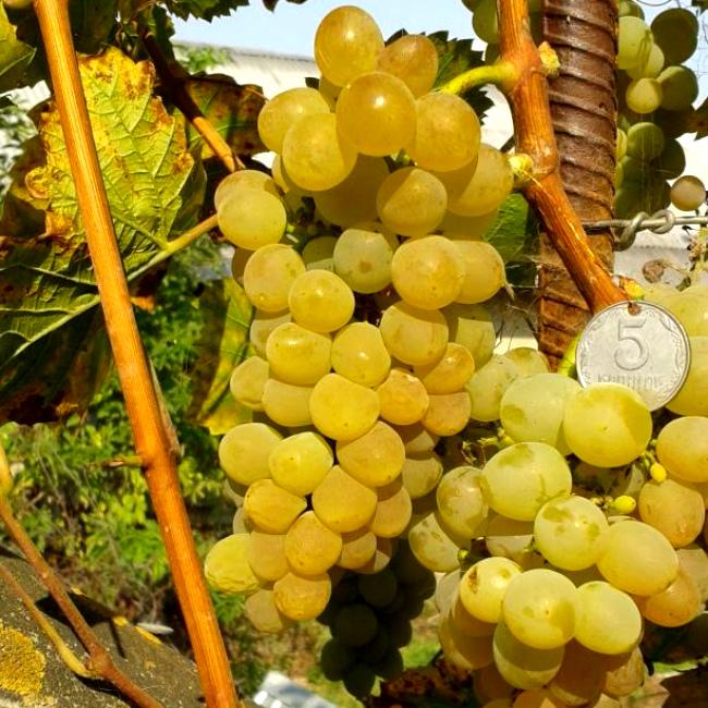 - ягоды собраны в крупные грозди. Крупномер винограда Кристалл морозостойкий, не боится грибковых заболеваний, вредителей. Куст среднерослый, разложистый. Побеги нужно регулярно обрезать, не допуская загущенности.