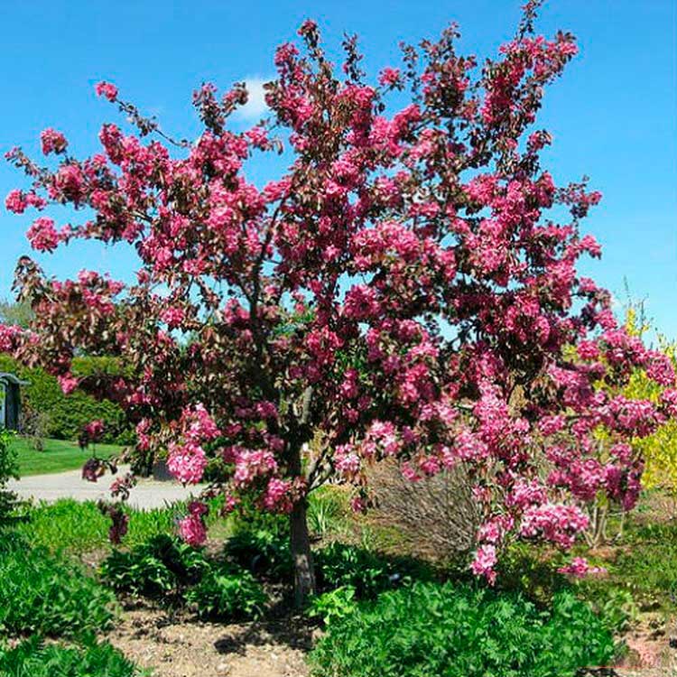Саженцы яблони Ола (Ola) вырастают в аккуратное дерево с ажурной кроной около 5 метров в высоту. Листва блестит на солнце и имеет зеленоватый окрас. Обильное цветение обладает розоватым тоном. Цветочки достаточно крупные. Преимущества яблони Ола: - устойчива к болезням - нужен небольшой уход - морозостойкая Плоды яблони Ола около 3 см в диаметре и имеют насыщенный багряный окрас. Яблоки остаются на дереве до заморозков. Растение нужно подкармливать калийным и фосфорным удобрением два раза в год. Ранней весной проводится обрезка сухих и больных побегов. Место для посадки должно быть солнечным или полутеневым.