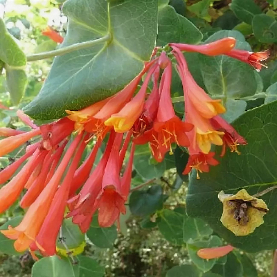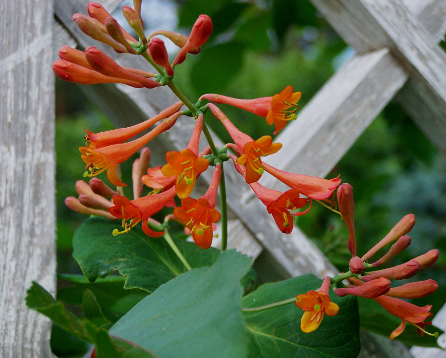 Саженцы жимолости Брауна Бланш Сэндман (Blanche Sandman) привлекают пышным и длительным цветением с июня по октябрь. Вечнозеленая кустарниковая лиана вырастает до 280 сантиметров в высоту уже к 3 году жизни. Трубчатые темно-красные с желтым центром цветки растут в кистях, по десятку в каждой. Яркий цвет бутонов подчеркивается насыщенной окраской изумрудной листвы. Многолетник используют для вертикального озеленения, позволяя лиане виться по опоре. Эффектно смотрится жимолость, расположенная на склоне или террасе, ниспадающие побеги образуют цветущий водопад.