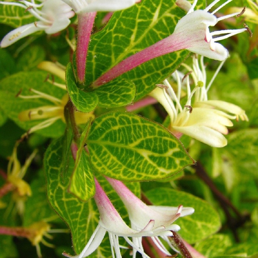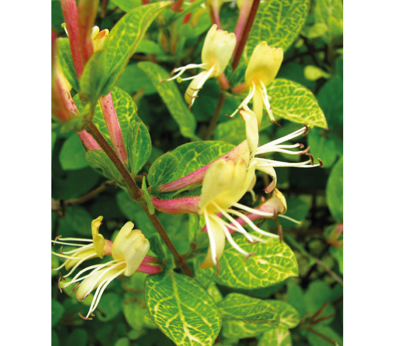 Жимолость японская ауреоретикулата - это великолепное растение с белыми цветками и желтыми листьями, которое станет настоящим украшением вашего сада. Ее ствол прочный и изящный, а размеры растения позволяют разместить его как в групповых, так и в одиночных посадках. Листья жимолости имеют необычную форму и яркий цвет, что придает ей особый шарм.